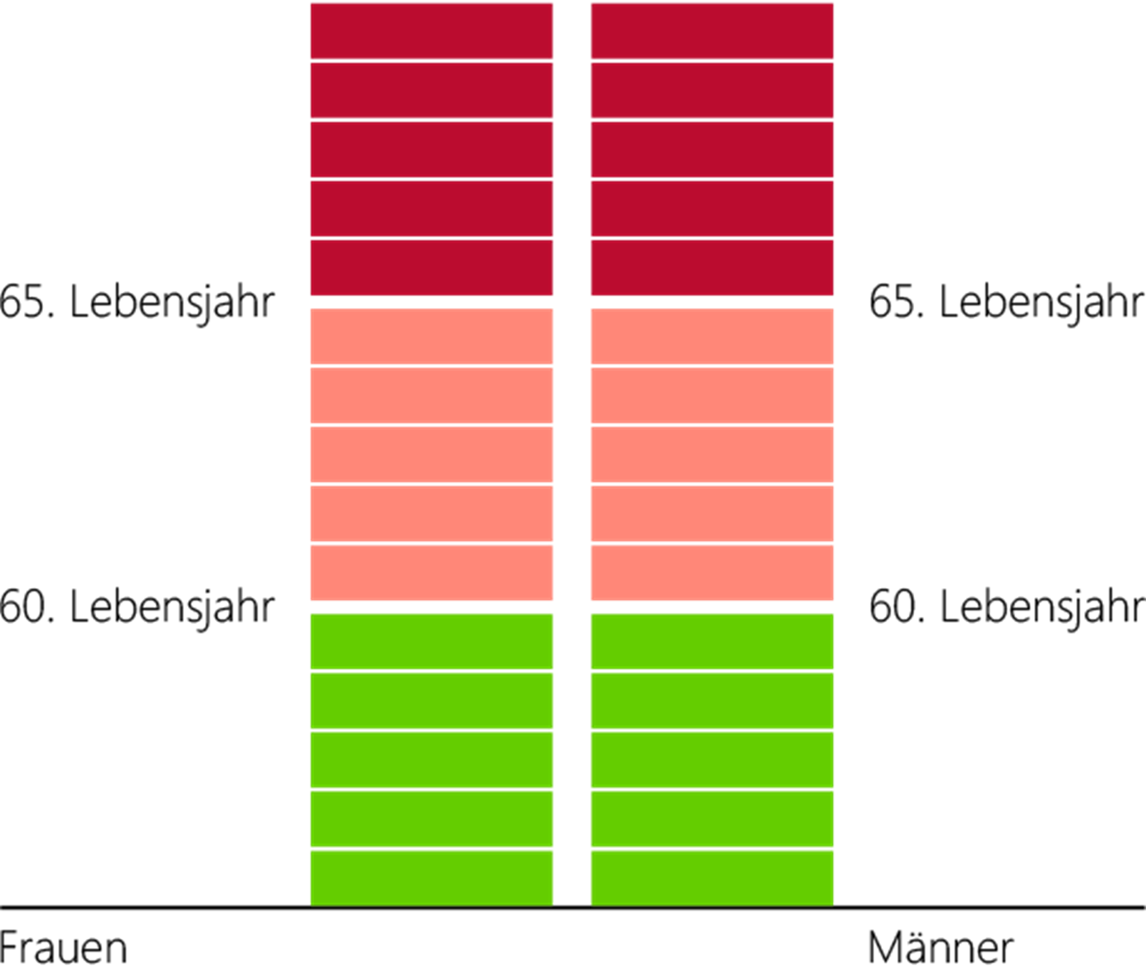 Wir unterscheiden zwischen einem Transfer vor dem Erreichen des Alters 60, einem Transfer in der Phase zwischen 60 und Erreichen des ordentlichen AHV-Alters und einem Transfer nach Erreichen des ordentlichen AHV-Alters.