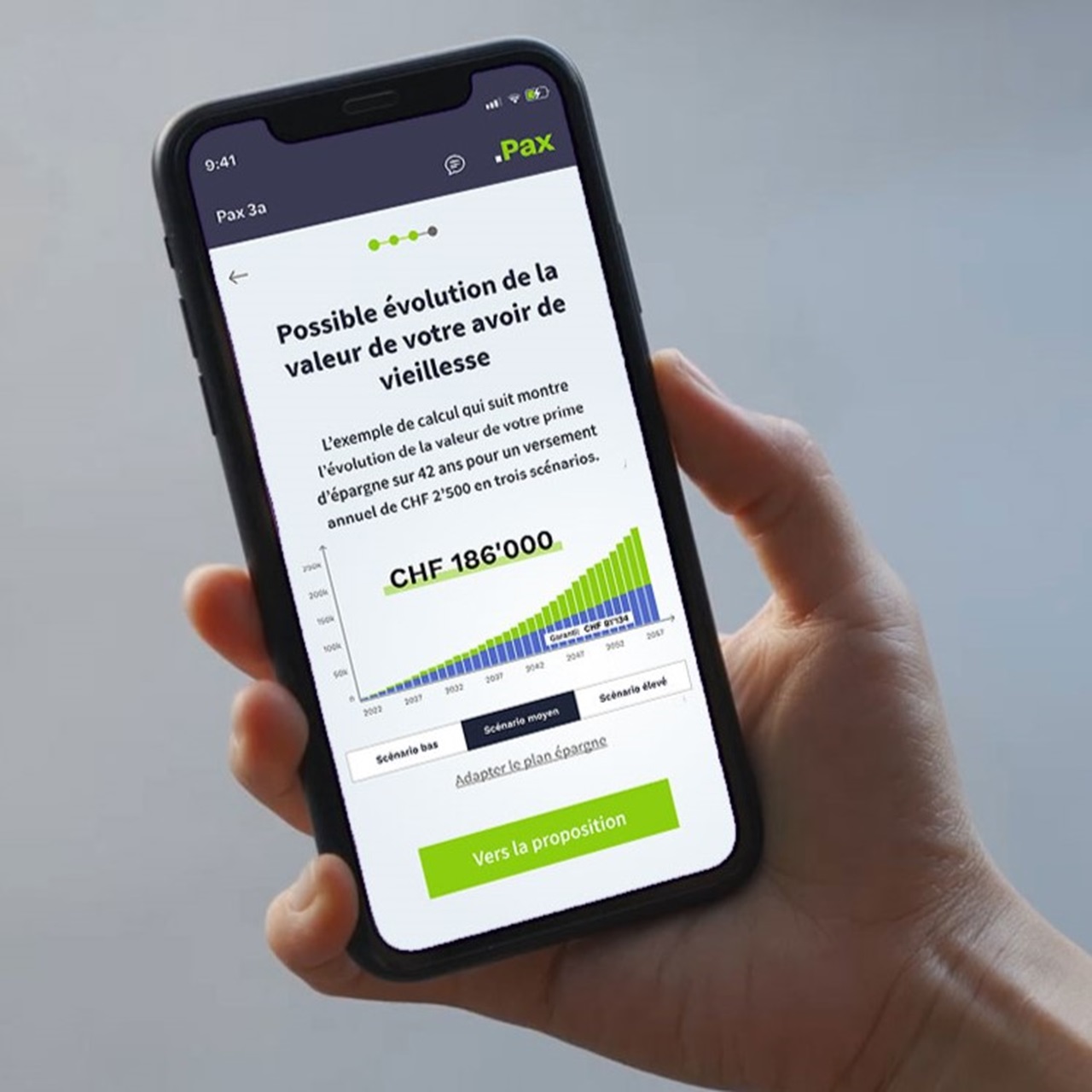 Si la personne devient incapable de travailler à 35 ans, Pax prend en charge l’intégralité de ses versements – soit CHF 71’781 au total jusqu’à la retraite. L’objectif de prévoyance est atteint avec certitude.