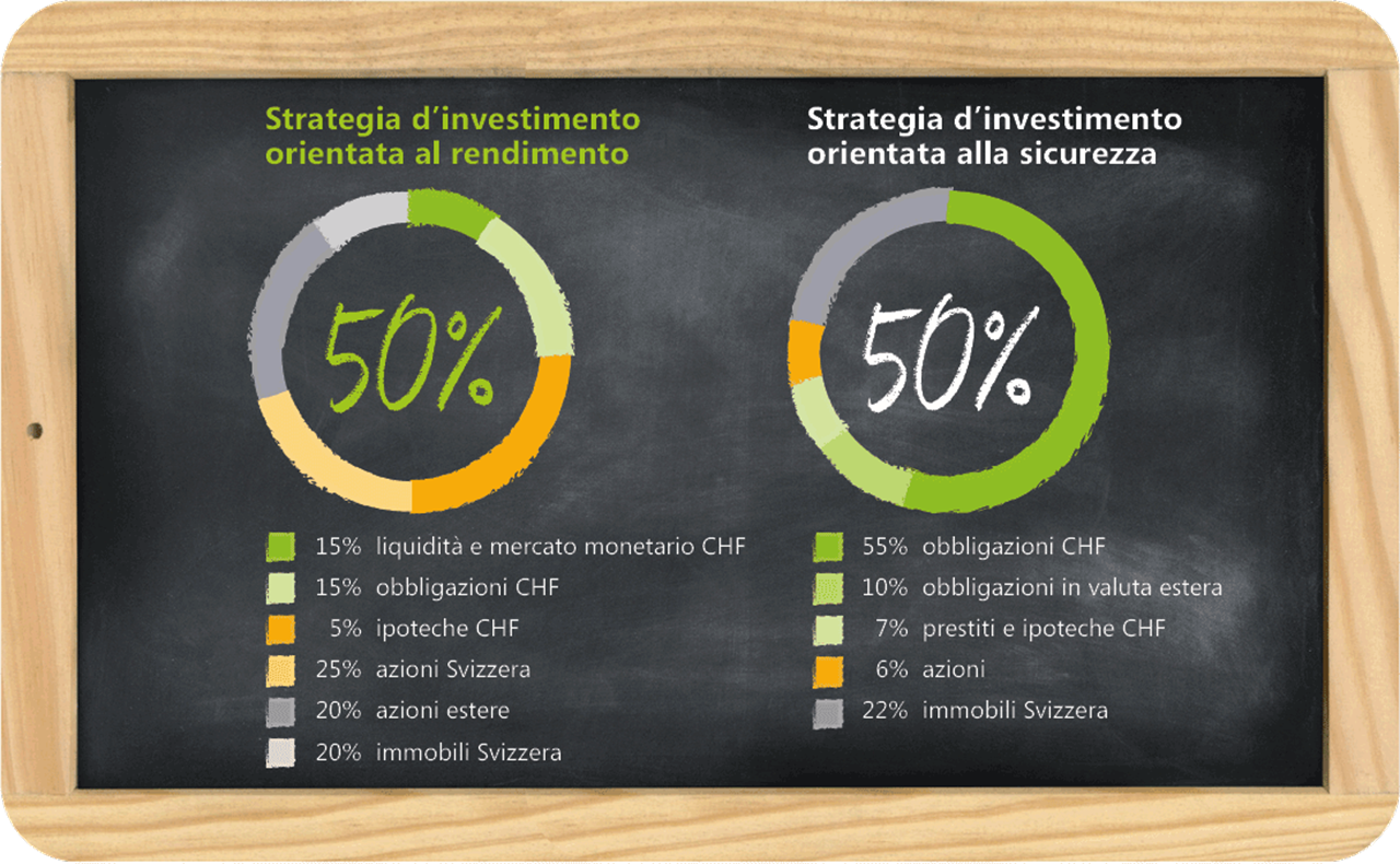 È opportuno correre dei rischi leggermente maggiori? Chi osa di più, può anche guadagnare di più. Ma ogni atto temerario è associato al rischio di perdere. Se è disposto ad accettare questo rischio ed eventualmente presume una sottocopertura della Sua garanzia previdenziale, deve orientare il Suo piano ai rendimenti.