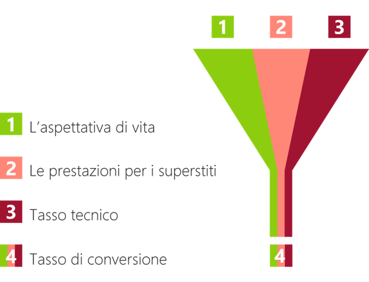 Il tasso di conversione dipende quindi dall'aspettativa di vita, dalle prestazioni per i superstiti e dal tasso tecnico. In altre parole: più alta è l'aspettativa di vita di un neo pensionato, ovvero più lungo è il periodo previsto di percepimento della rendita e minore è il rendimento atteso degli investimenti, più basso sarà il livello a cui fissare il tasso di conversione e, di conseguenza, la rendita di vecchiaia e viceversa. Questo tasso vale tuttavia solo per l’avere di vecchiaia LPP.